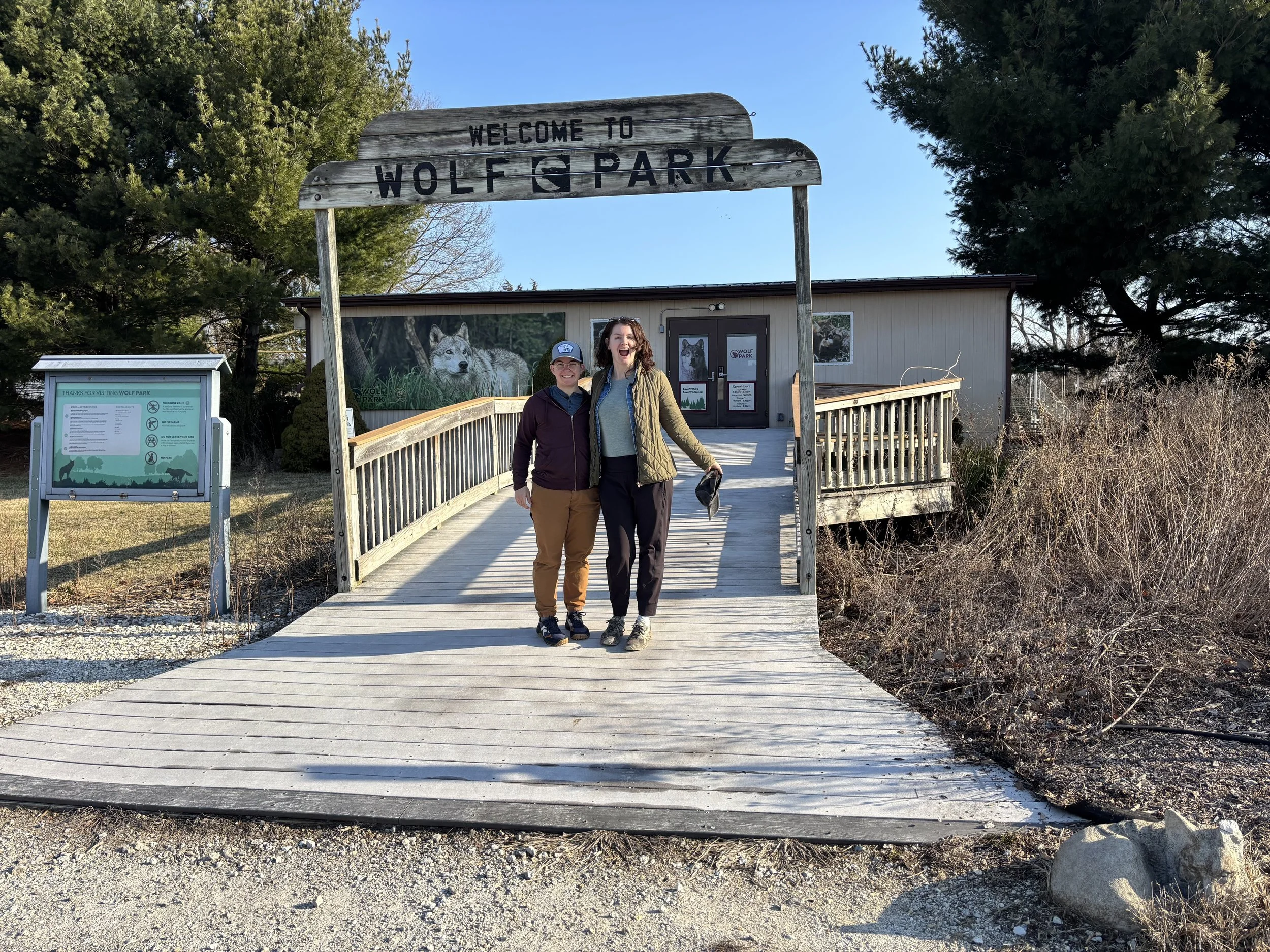 I’m sure it will come as no surprise that Ran and I (Stephanie) are animal lovers. Of course we love dogs, but we are also fond of basically all the animals out there, including one of our dogs’ closest relatives: the wolf. So you can imagine our excitement when we met Ryan Talbot at a behavior analysis conference last year. Ryan is the Behavioral Enrichment and Training Manager at Wolf Park: a leading center for research, conservation, and education of wolves and other canid species in Battleground, Indiana. Ran and I were familiar with Wolf Park, as the animals there frequently participate in published research, and we were delighted to learn more about the work that Ryan and his colleagues do. Ryan kindly extended an invitation for us to come visit.